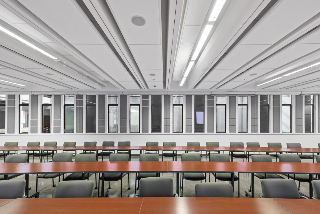The Henry Angus Classroom Acoustical Upgrade was aimed at enhancing the learning environment through improved sound quality and noise control. Focused on optimizing speech intelligibility and reducing ambient noise and sound reverberation, the upgrades included acoustic all panels and upgraded ceiling treatments, to create a more effective and engaging classroom experience.